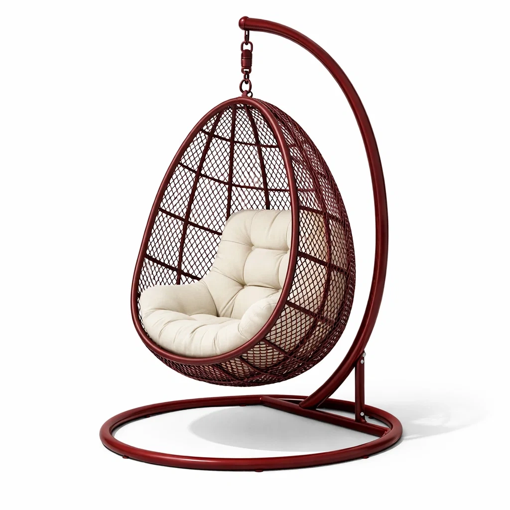 Eiförmiger hängesessel mit gestell aus metall mit polyesterkissen rot