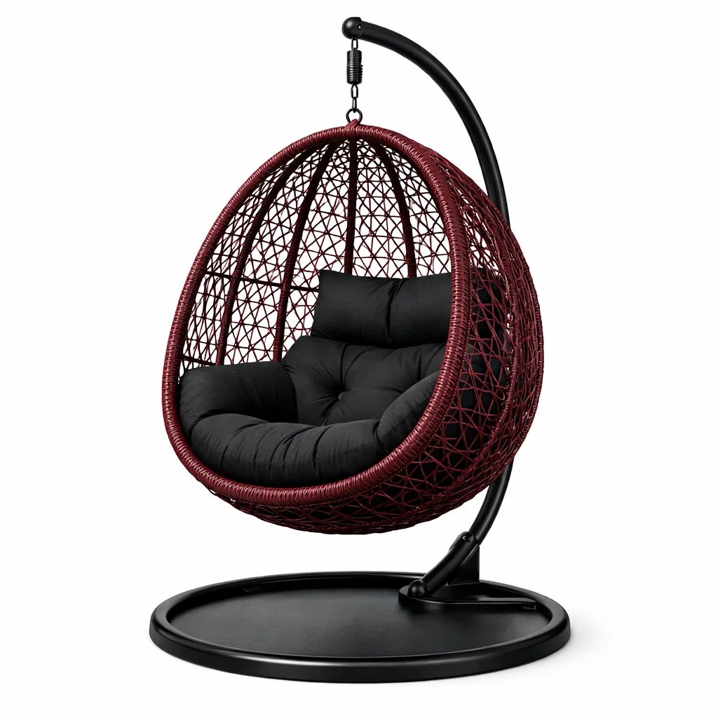 Eiförmiger hängesessel mit gestell aus stahl mit polyethylen geflecht schwarz bordeaux